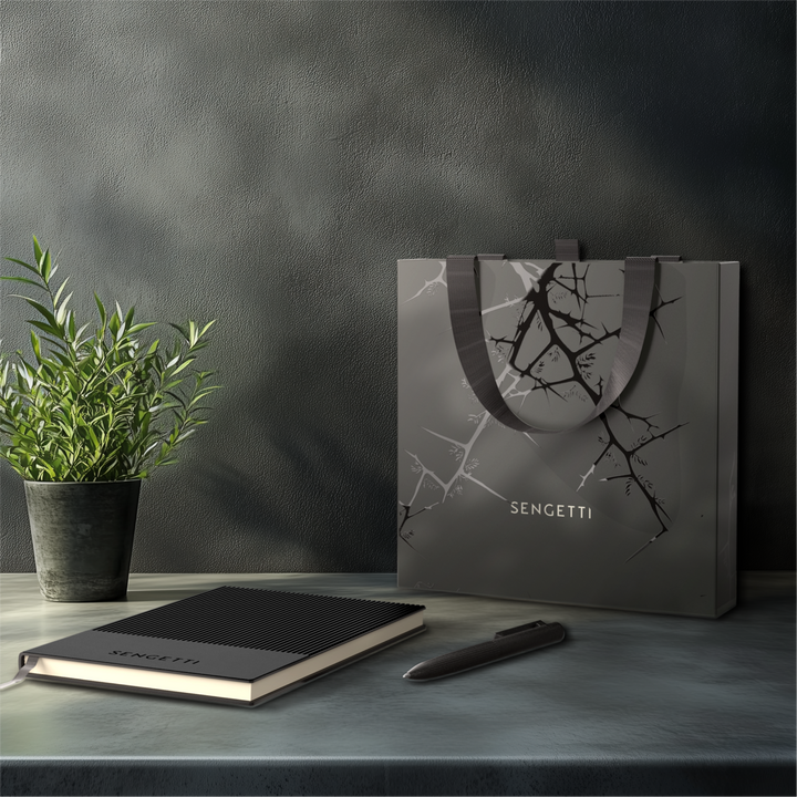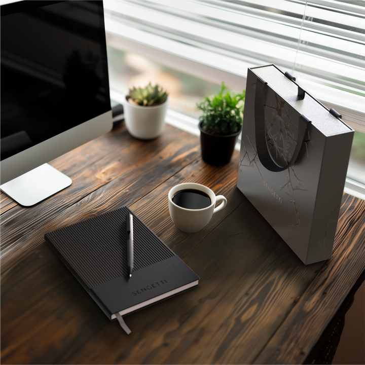 The Sengetti Ribbed Pen & Notebook Gift Set by Andy Cartwright is the perfect fusion of luxury design and practical utility. Crafted for professionals, creatives, and style-conscious individuals, this premium set includes a textured A5 notebook and a matte black metal pen—beautifully presented in an innovative gift box that transforms into a sophisticated carry bag.